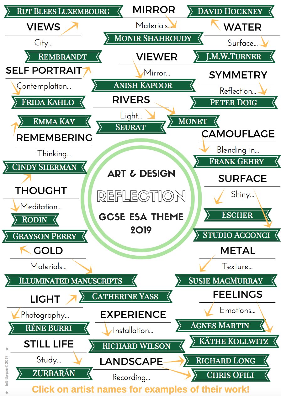 Mima Bone On Twitter Edexcel Art And Design Gcse Mind Map On The Reflection Theme Https T Co Yom6rxbxds Artgcse Edexcelart Artteacher Great Support For Students Working On The Esa Https T Co Rpw6aigvnp Twitter